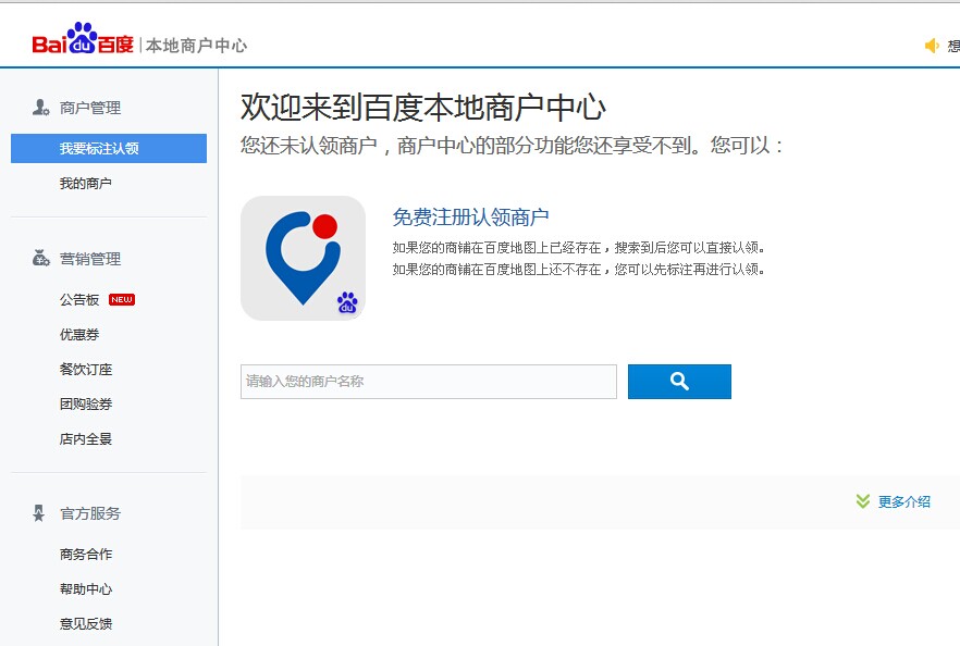 下一步http://nlbc.baidu.com/lbs-lbc/index.action?from=maptop在下圖輸入框內(nèi)輸入自己商鋪的名字,如果能搜得到,直接認(rèn)領(lǐng)即可,并上傳相關(guān)資質(zhì),如果查詢不到就要先到地圖中標(biāo)注店鋪位置,然后認(rèn)領(lǐng)