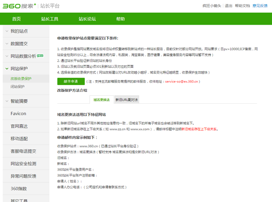 收錄保護(hù)方法:域名更換法(暫時(shí)支持 域名更換法和提交新舊URL對法)
