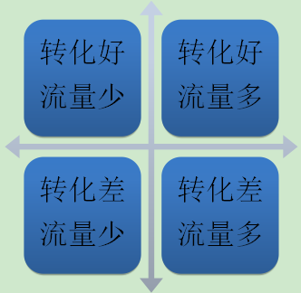 我們可以通過象限分析法進(jìn)行分析處理,請(qǐng)看以下流量象限分析圖: